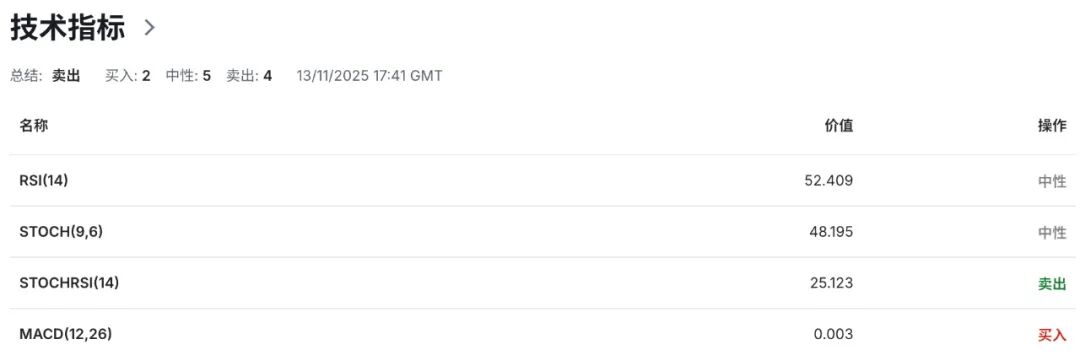 技术指标显示,4小时级别布林带上轨切入点指向1.4040区域水平为汇价提供短线动态阻力,布林带中轨运行线指向的1.4015区域水平为走势界定潜在强弱分化,布林带下轨切入点指向的1.3990区域水平为汇价提供短线动态支撑。当前汇价触及布林带上轨区域运行,显示多头动能占据主导优势。布林带开口维持收缩状态,表明短线波动率维持较低水平,汇价或维持短线震荡格局。与此同时,4小时级别14日RSI相对强弱指标处于高位52.50附近中性区域,表明当前多空力量维持相对均衡状态,汇价或面临阶段性方向选择。