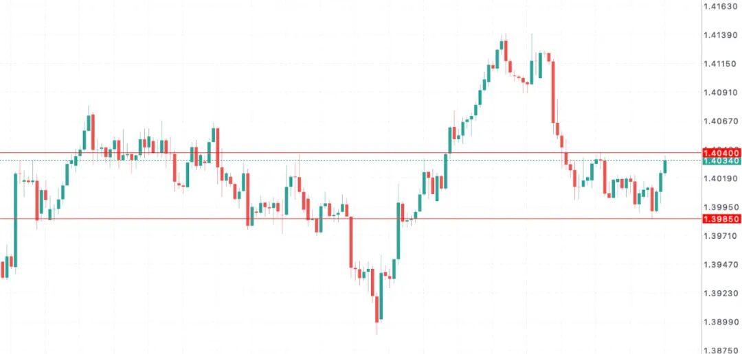 等待1.4040-1.3985价格区间的4小时收市跟进信号,采用突破交易策略。